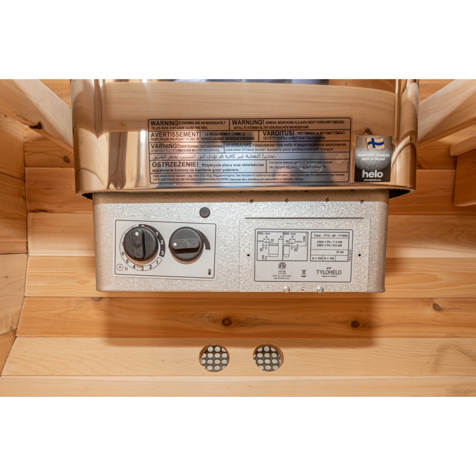 The Canadian Timber Collection Luna Sauna by Dundalk LeisureCraft is a handcrafted wellness retreat designed to bring warmth, relaxation, and natural beauty to your home. Made from Eastern White Cedar, it features a light, rustic finish with tight knots that is naturally resistant to decay and moisture. Its signature rounded design enhances both style and heat circulation, while the cozy interior comfortably seats two to four people—perfect for couples or small groups.